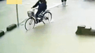 Video: Người phụ nữ đi xe đạp sụp phải hố nước sâu