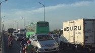 Xe khách chết máy, cầu Rạch Miễu kẹt xe nhiều giờ