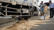 Lật xe tải, gần 3.000 lít hóa chất rò rỉ ra cống thoát nước