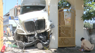 Xe tải mất lái đâm vào nhà dân, 4 người thoát chết