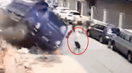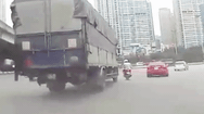 Video: Xe tải chạy hai bánh, lao về phía người đi bộ