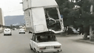 Video: Ô tô 'cõng' cabin xe đầu kéo chạy trên đường phố