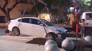 Video: Ôtô đang đậu, bị húc bay lên vỉa hè, tông vào nhiều xe máy